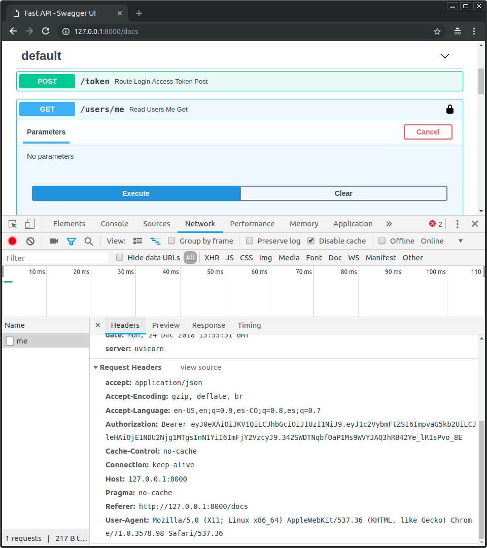 서버를 실행하고 문서로 이동하십시오: http://127.0.0.1:8000/docs.